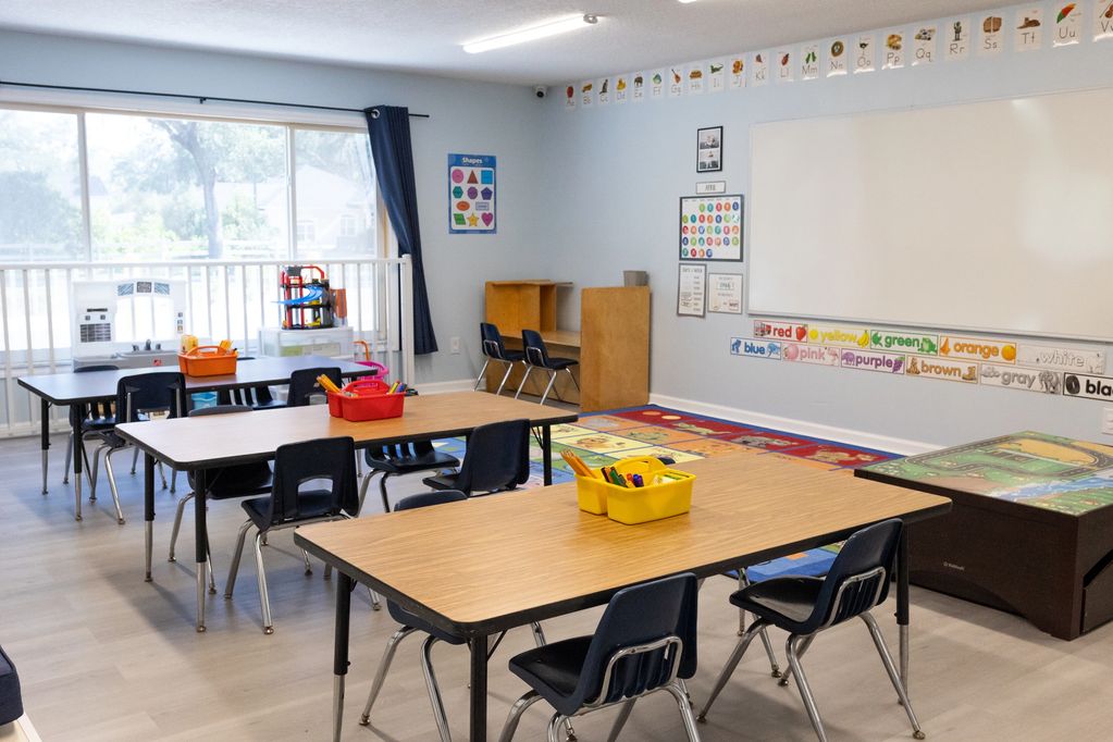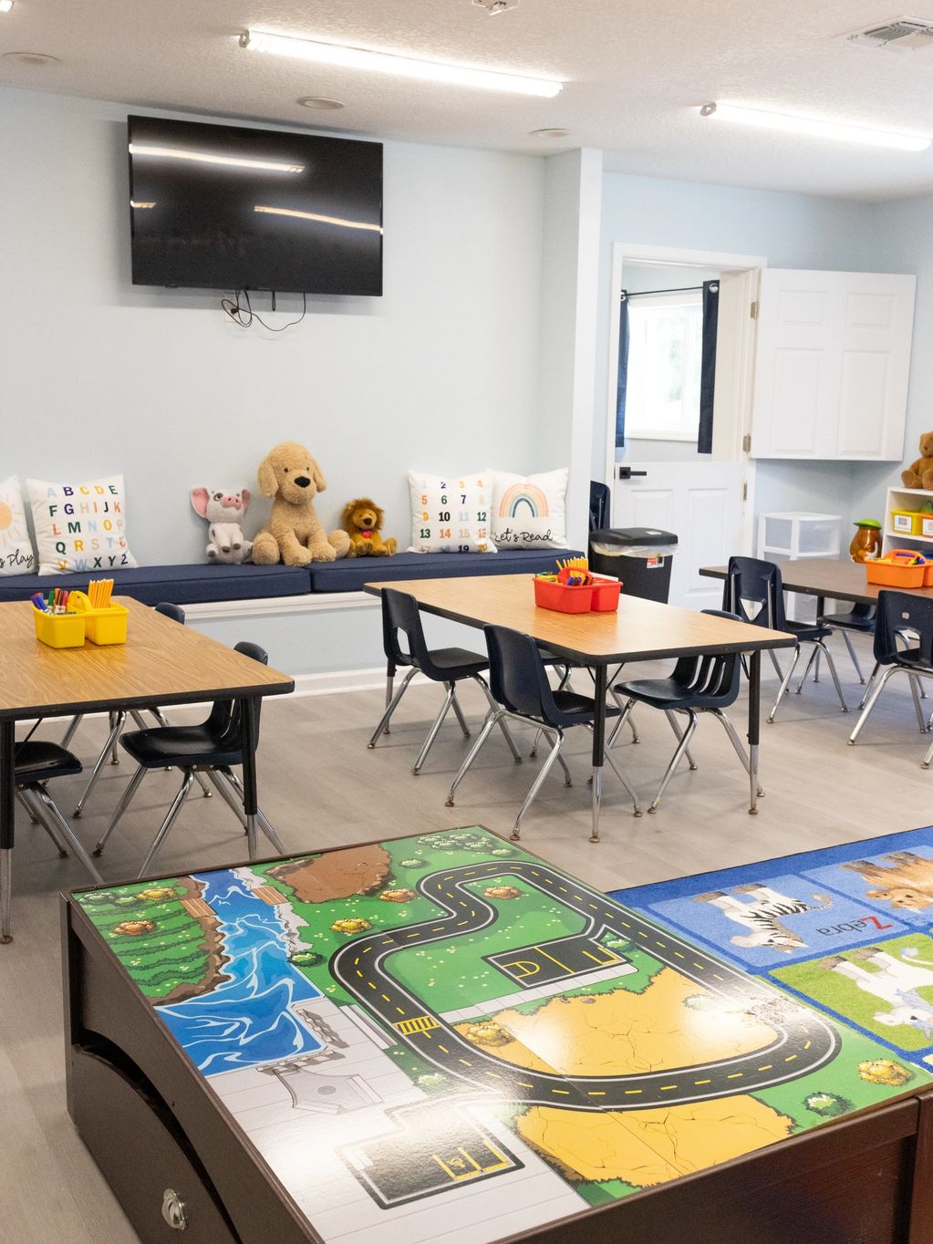 Another view of our VPK classroom. We are excited to provide a reading corner/bench for our students to assist with developing a love for reading.